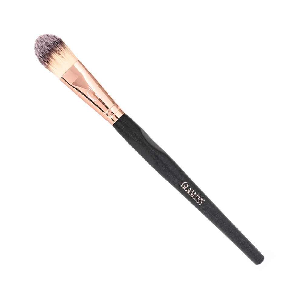 Profesjonalny pędzel do podkładu i pielęgnacji GLAMTES 01, stworzony przy udziale Mistrzyni Świata w Makijażu Mileny Tomkowskiej. Języczkowy kształt i miękkie syntetyczne włosie zapewniają równą, bezsmugową aplikację podkładu, kremów i masek. Idealny dla makijażystek i osób malujących siebie.